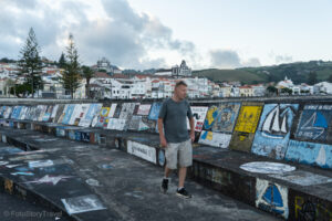 Niezwykle charakterystycznym i wartym zwiedzenia miejscem jest port w Horta. Od 40 lat żeglarze z całego świata zostawiają na nabrzeżu malunki, coś w rodzaju podpisu. Jedne są dość proste, inne to małe dzieła sztuki. Zrobiłem chłopakom challenge - mieli znaleźć malunek z możliwie najstarszą datą. Udało im się znaleźć 1983 rok.